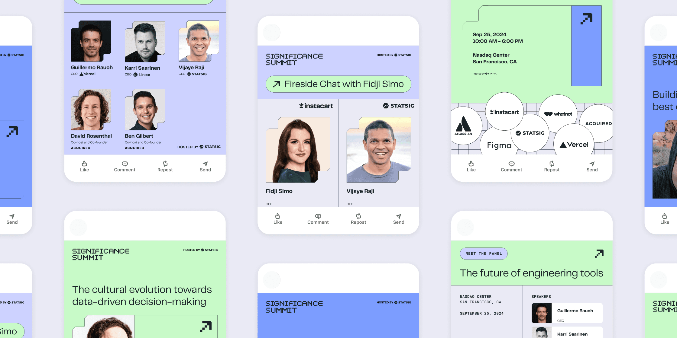 Significance Summit was an early milestone in shaping Statsig’s event presence, bringing product builders together while establishing a foundation for how the brand shows up in the community. As Statsig’s first large-scale gathering, the summit was an opportunity to translate the company’s experimentation-first philosophy into a cohesive visual and experiential identity. The work helped set the tone for future events, laying the groundwork for what would later evolve into Sigsum.