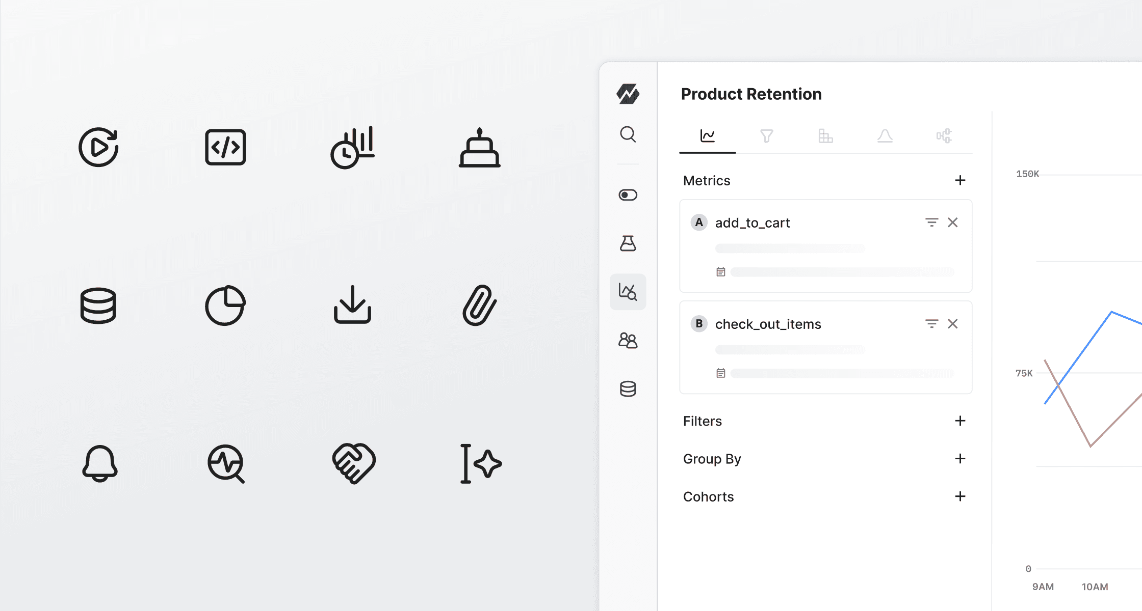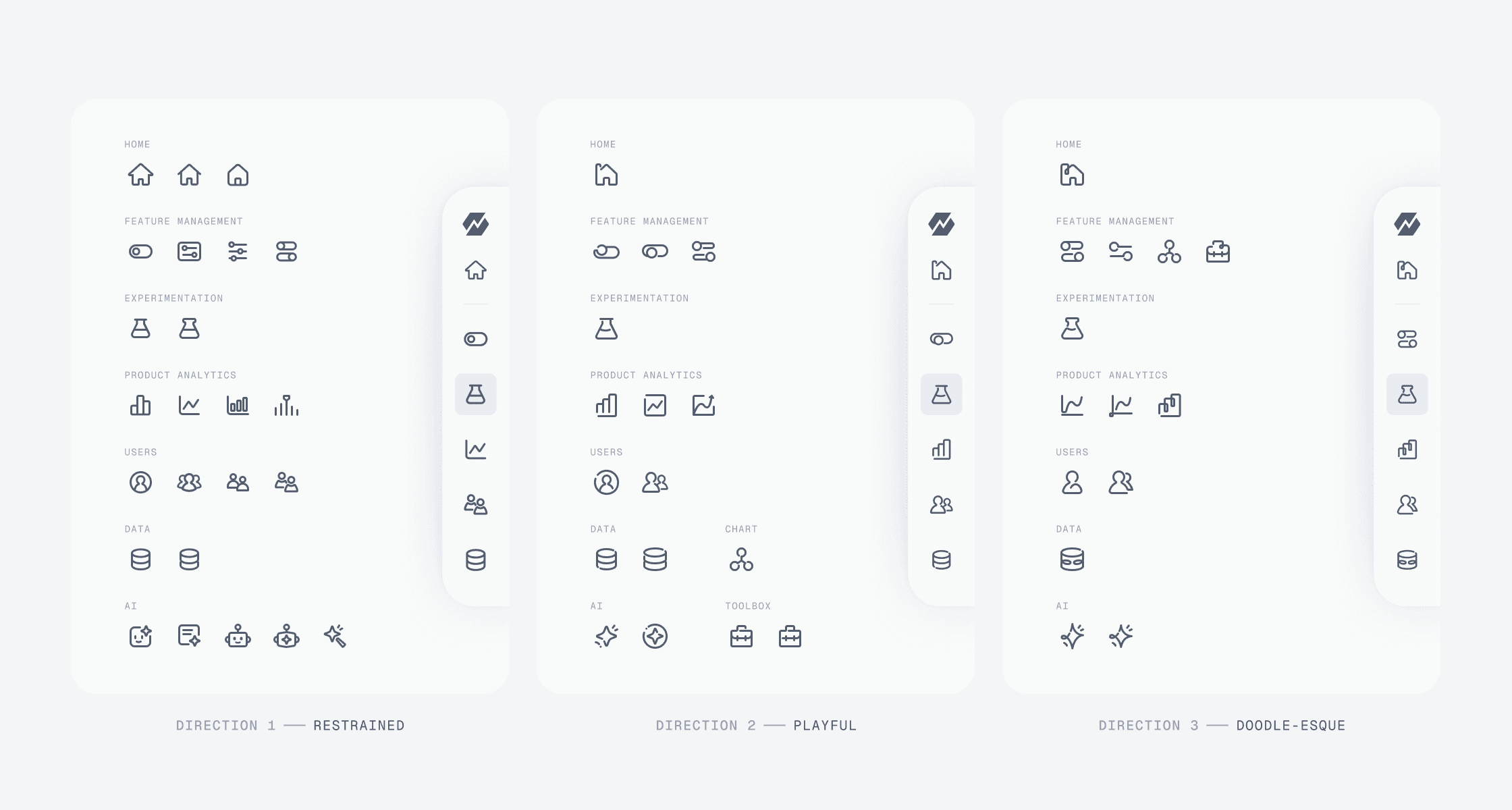 As Statsig grew, its existing icon set started to show at the seams: product and marketing were pulling from different places, and the visual language felt inconsistent. I led the design of Staticons, a custom icon library that replaced Google Material icons with a minimal, rounded style built for Statsig’s evolving brand. The project involved a full audit, defining clear guidelines (sizes, stroke, spacing), and building a scalable Figma library teams could rely on across surfaces.